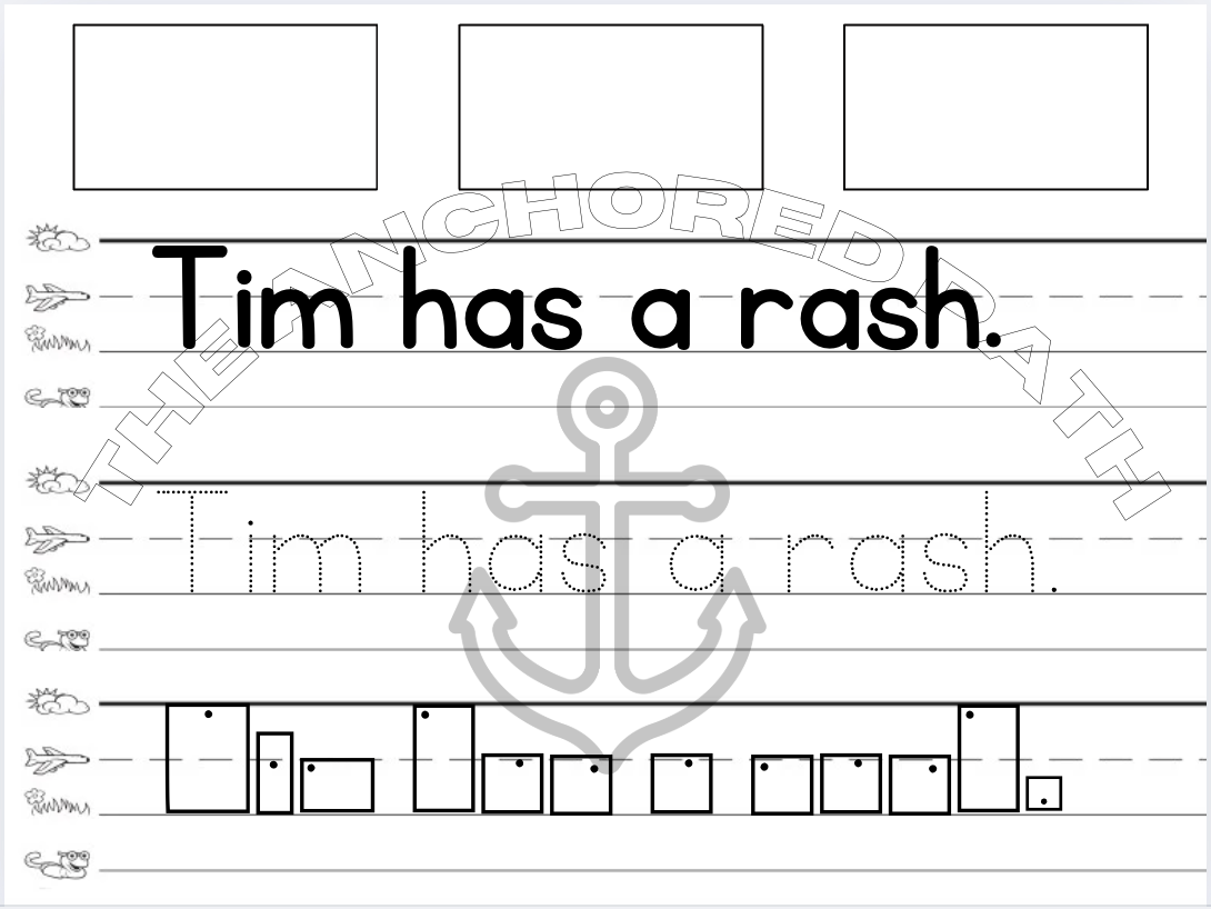 Decodable sentences built from Fundations-aligned sounds and trick words